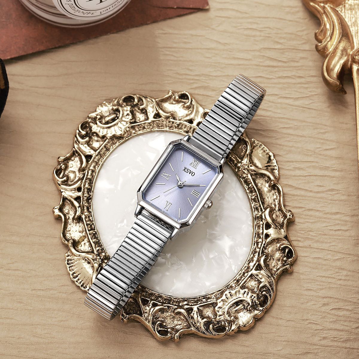 ساعت زنونه ایکس وی بند استیل مینیمال طرح یونانی صفحه مستطیل قفل ریلی موتور کوارتز