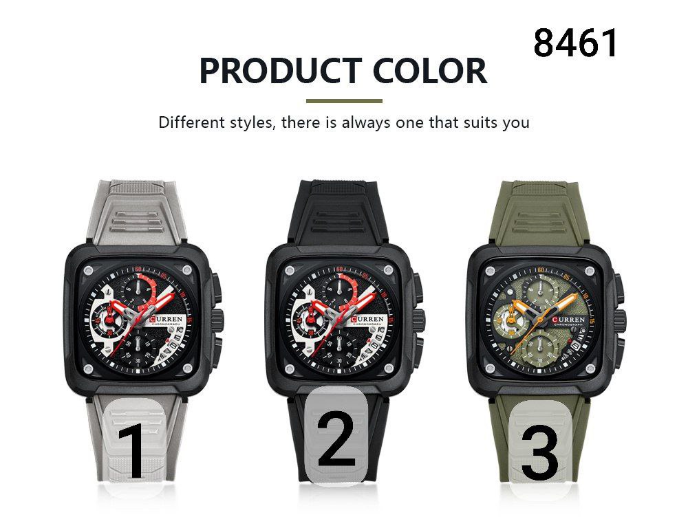 ساعت مردانه مارک کارن CURREN 8461 رنگ ثابت تقویم دار قفل سگکی بند پیو نرم سه موتوره فعال قاب و بدنه استیل کیفیت بسیار عالی