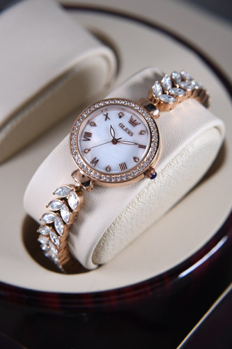 ساعت زنانه شیشه ضدخش برند اولوز اورجینال نگین های بدون ریزش رنگ ثابت