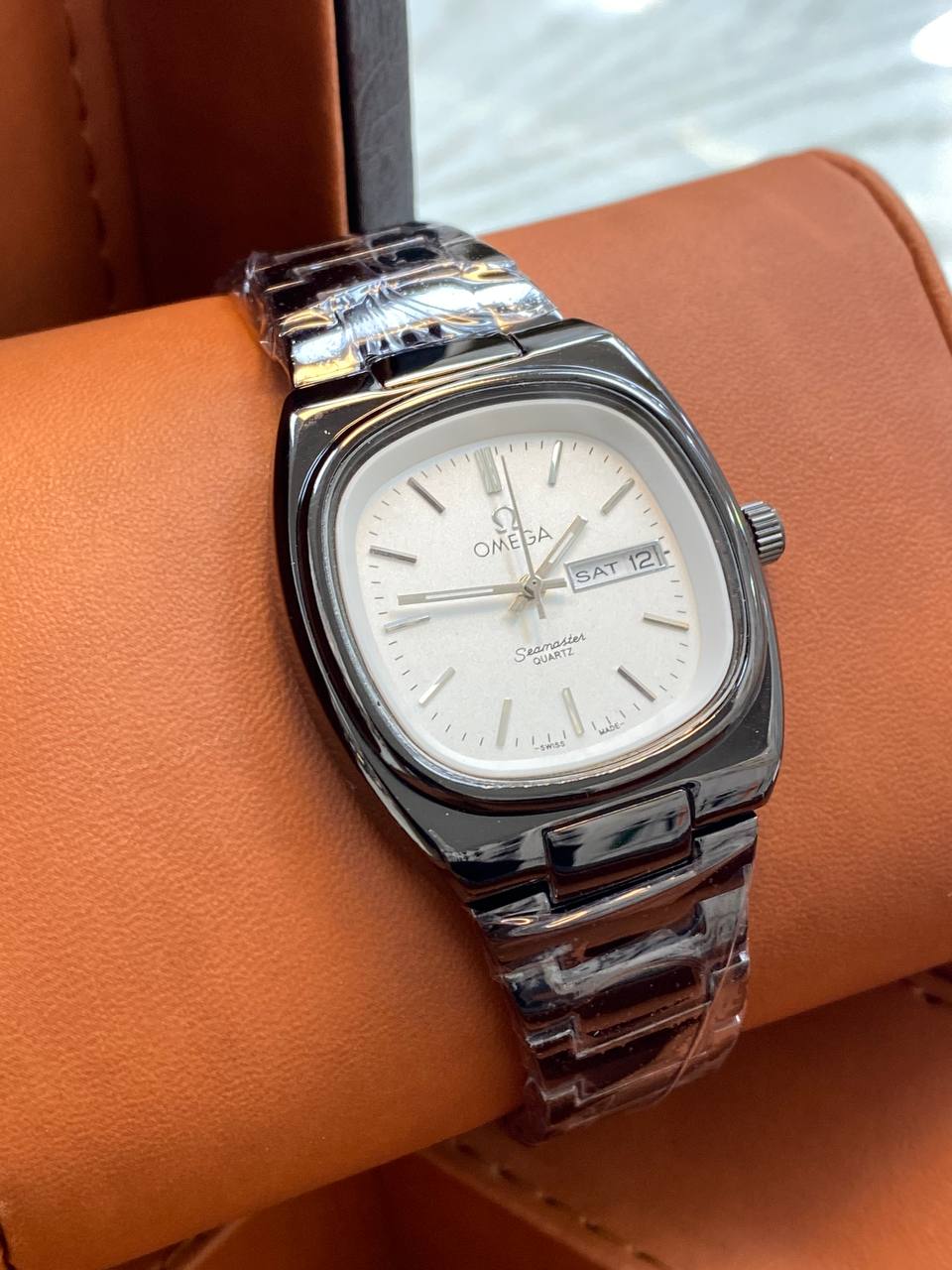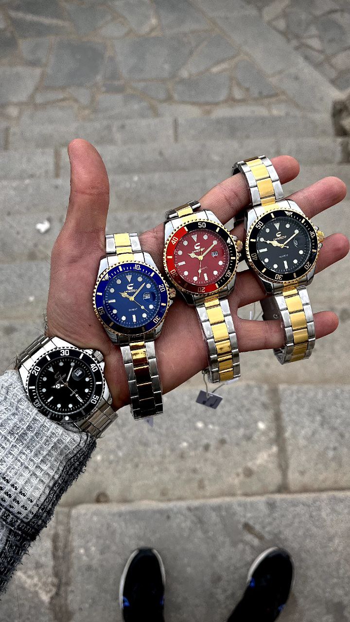 ساعت بین باند مدلی نو مناسب آقایان مقاوم دربرابر آب برندشرکتی اوریجینال کارت گارانتی دارای روز شمار ایام هفته بند استیل فولاد شیشه سافایر شب نما قفل دو پروانه موتور کوارتز