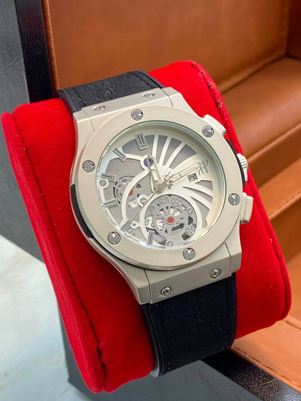 ساعت مردانه هابلوت طرح اتومات جدید تقویم دار قفل طرح اصلی و کلیپسی